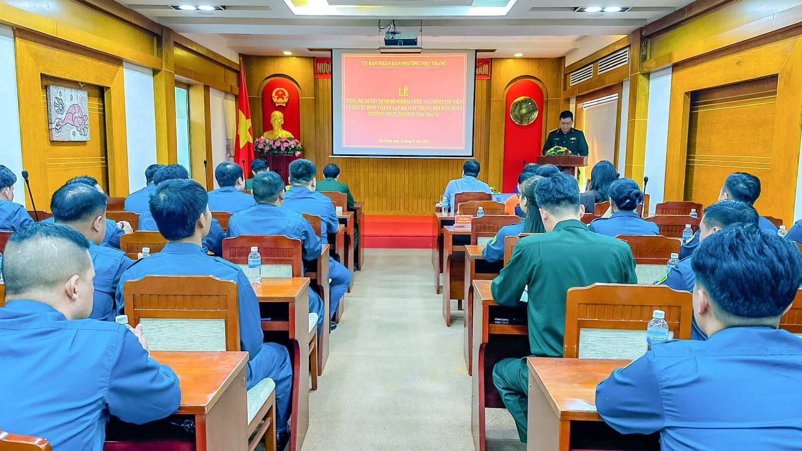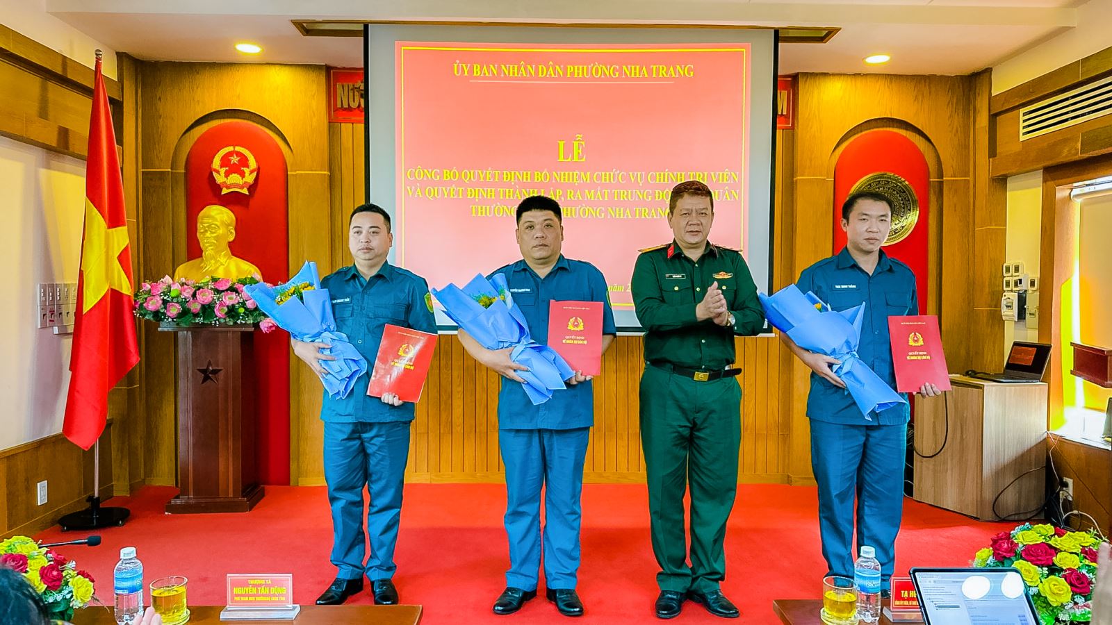 Buổi lễ cũng đã công bố các quyết định của Ban CHQS phường Nha Trang về việc bổ nhiệm cán bộ chỉ huy Trung đội Dân quân thường trực phường.