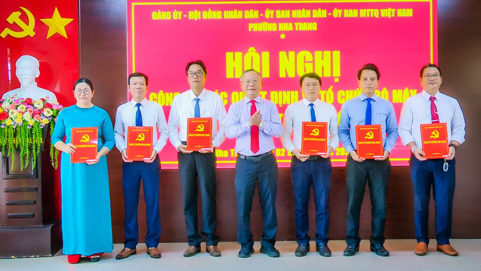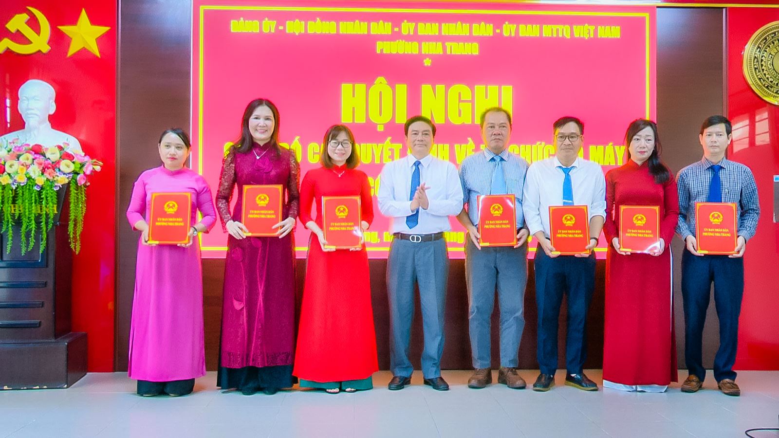 Hội nghị cũng công bố Quyết định của UBND phường Nha Trang việc thành lập Trung tâm Phục vụ hành chính công phường và các Quyết định về việc bổ nhiệm công chức lãnh đạo. Theo các Quyết định: bà Phan Ngọc Kim Trâm được bổ nhiệm giữ chức vụ Phó Giám đốc Trung tâm hành chính công phường Nha Trang; ông Bùi Thanh Trúc giữ chức vụ Trưởng phòng Văn hóa - Xã hội phường; bà Phạm Thị Châu Anh giữ chức vụ Phó Trưởng phòng Văn hóa - Xã hội phường; ông Ngô Khắc Thinh giữ chức vụ Trưởng phòng Kinh tế - Hạ tầng và Đô thị phường; bà Nguyễn Diệu Hương giữ chức vụ Phó Trưởng phòng Kinh tế - Hạ tầng và Đô thị phường; bà Huỳnh Thị Minh Thư giữ chức vụ Chánh Văn phòng HĐND & UBND phường; ông Nguyễn Phạm Đăng Khoa giữ chức vụ Phó Chánh Văn phòng HĐND & UBND phường.
