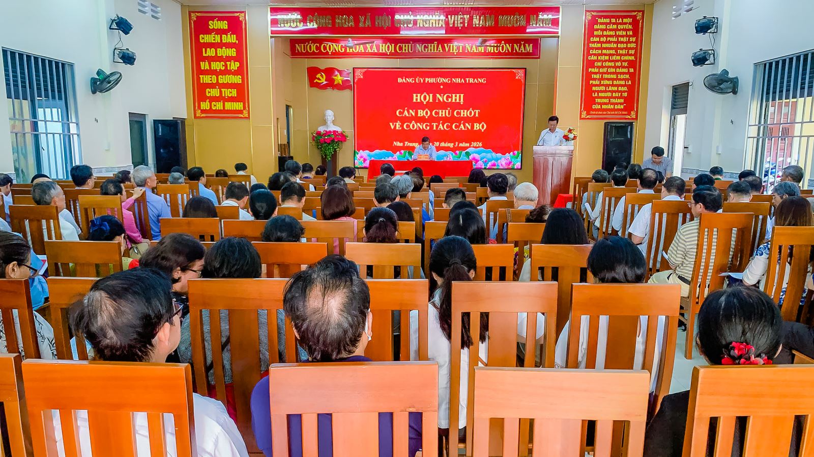 Chiều ngày 20/3, Đảng ủy phường Nha Trang tổ chức Hội nghị cán bộ chủ chốt thực hiện quy trình giới thiệu nhân sự để Hội đồng nhân dân phường bầu giữ các chức vụ lãnh đạo chủ chốt của HĐND, UBND phường nhiệm kỳ 2026 - 2031. Đồng chí Tạ Hồng Quang – Tỉnh uỷ viên, Bí thư Đảng uỷ, Chủ tịch HĐND phường chủ trì hội nghị.