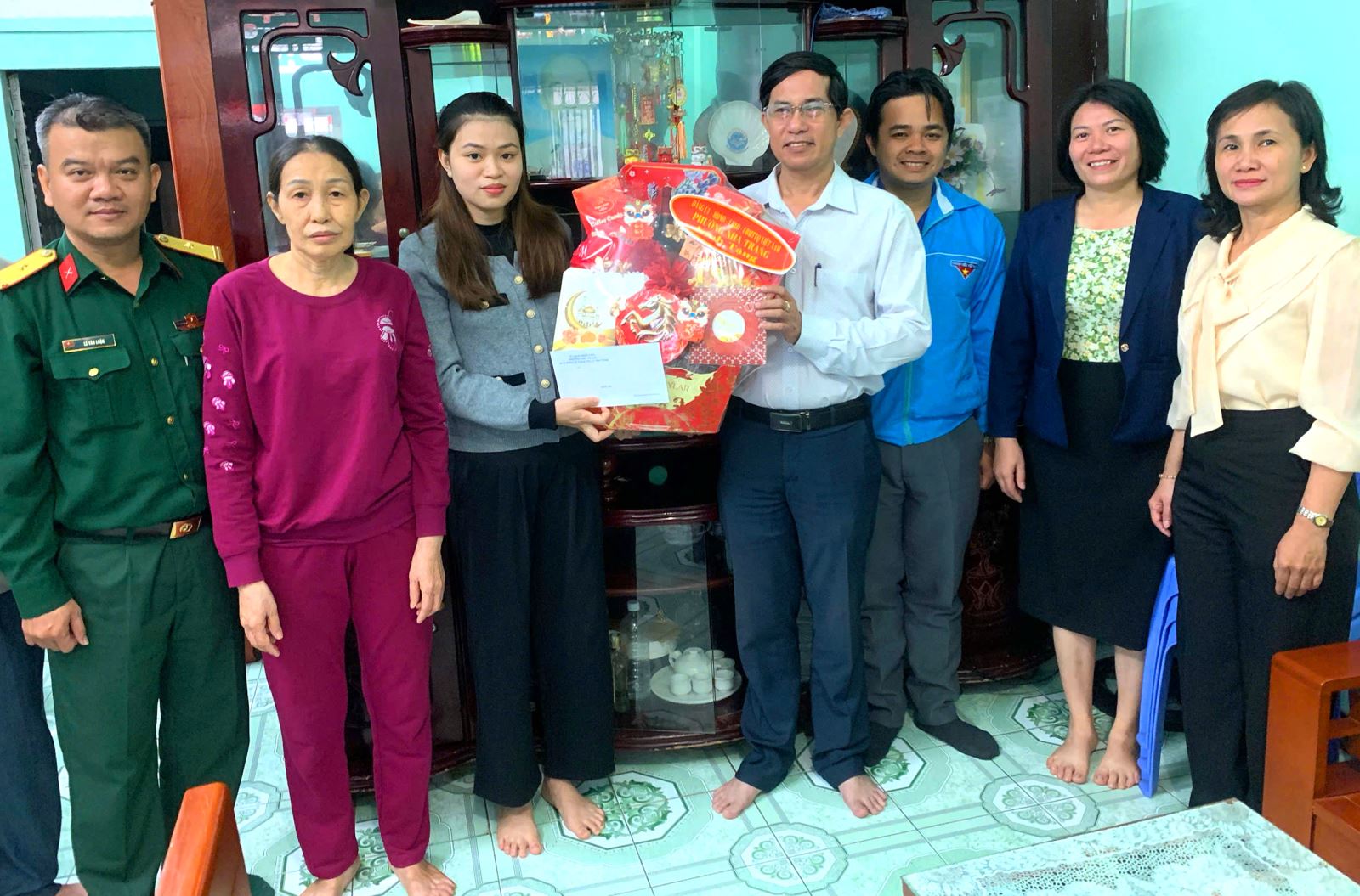 Ông Huỳnh Quang Tú - Phó Chủ tịch UBND phường Nha Trang cùng đoàn công tác tặng quà chúc mừng gia đình Trung tá Nguyễn Văn Trương