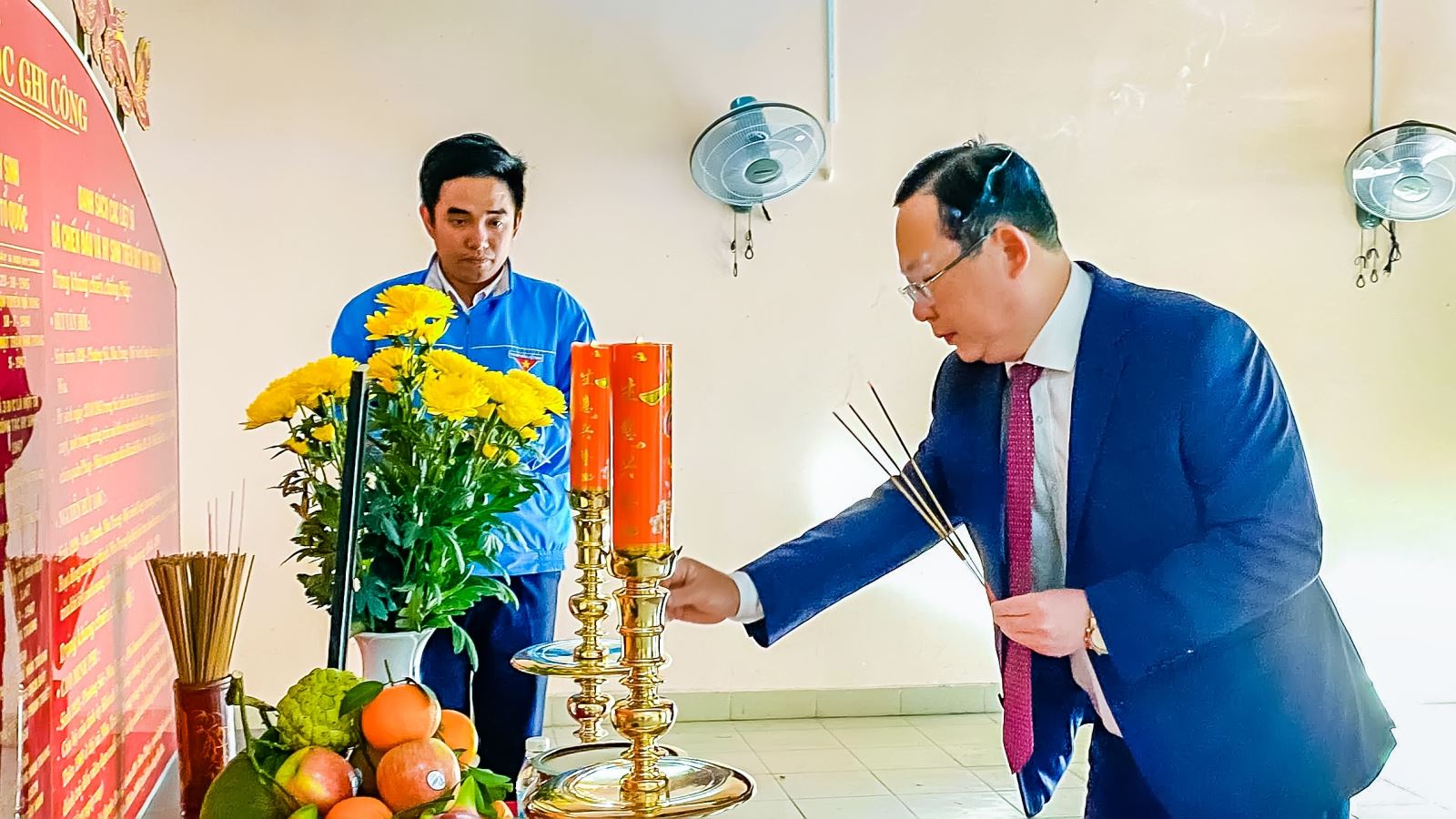 Phó Bí thư Thường trực Đảng ủy Lưu Thành Nhân thành kính dâng hương tại Nhà bia, Đài tưởng niệm liệt sĩ Đình Phương Câu