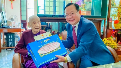 Đồng chí Lưu Thành Nhân thăm tặng quà Mẹ Việt Nam anh hùng Lê Thị Liên