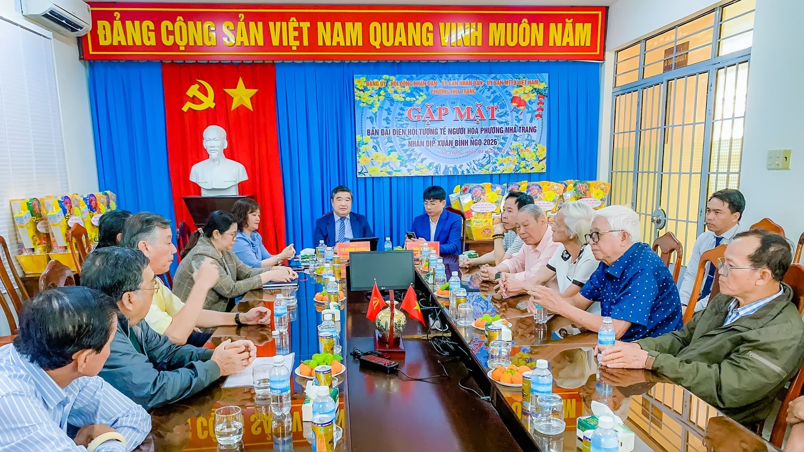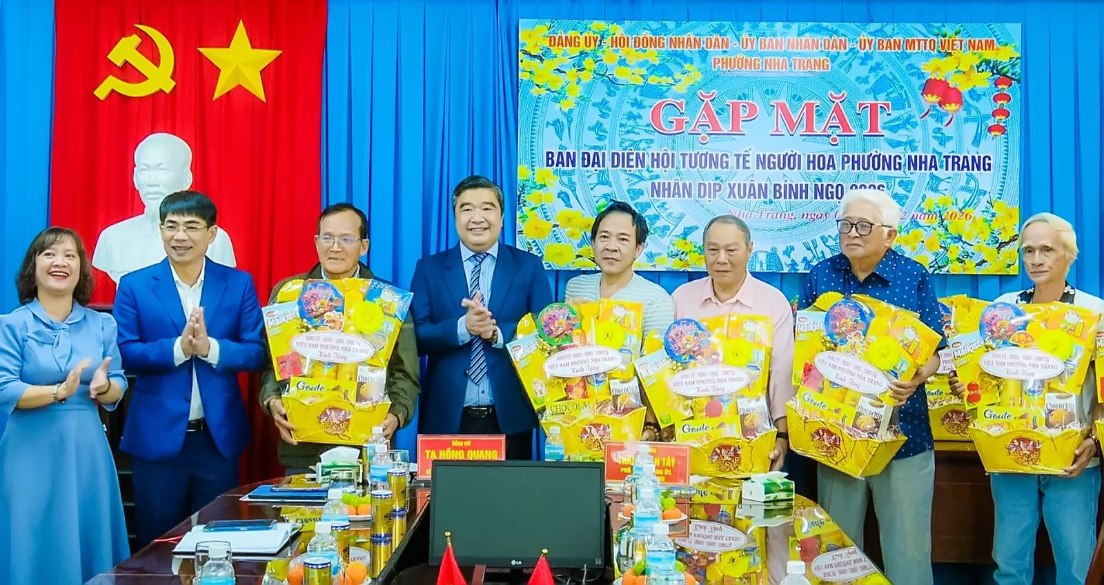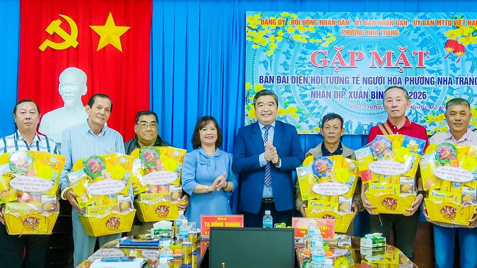 Sáng ngày 4/2, Đảng uỷ-HĐND-UBND-UBMTTQ Việt Nam phường Nha Trang đã tổ chức gặp mặt, chúc tết Ban đại diện Hội Tương tế người Hoa phường Nha Trang nhân dịp Tết nguyên đán Bính Ngọ năm 2026. Dự buổi gặp mặt các ông Tạ Hồng Quang – Tỉnh uỷ viên, Bí thư Đảng uỷ, Chủ tịch HĐND phường; Trần Xuân Tây – phó Bí thư Đảng uỷ, Chủ tịch UBND phường; Nguyễn Thị Phương Duyên – Uỷ viên Ban Thường vụ Đảng uỷ, Chủ tịch UBMTTQ Việt Nam phường.