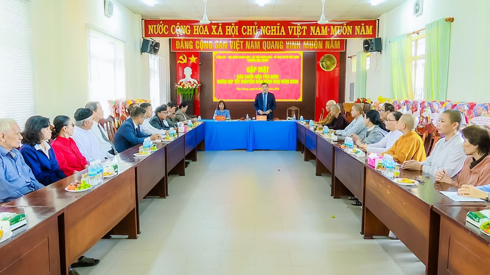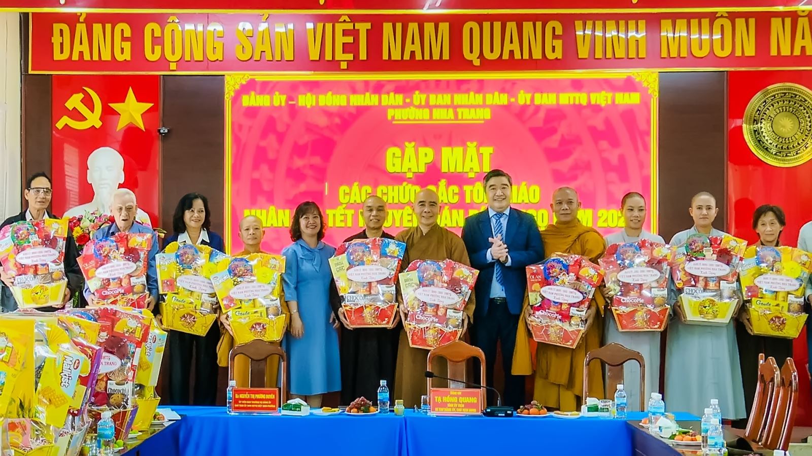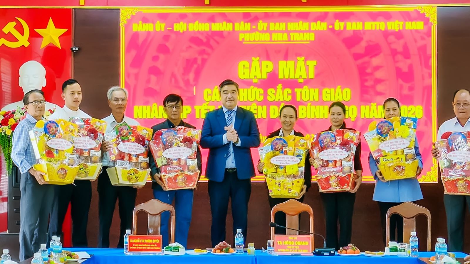 Sáng ngày 4/2, Đảng uỷ - HĐND – UBND – UBMTTQ Việt Nam phường Nha Trang đã tổ chức buổi gặp mặt, chúc tết chức sắc các cơ sở tôn giáo trên địa bàn phường nhân dịp Tết nguyên đán Bính Ngọ 2026. Dự buổi gặp mặt có ông Tạ Hồng Quang – Tỉnh uỷ viên, Bí thư Đảng uỷ, Chủ tịch HĐND phường; bà Nguyễn Thị Phương Duyên – Uỷ viên Ban Thường vụ Đảng uỷ, Chủ tịch UBMTTQ Việt Nam phường, cùng các chức sắc, chức việc đại diện cho 43 cơ sở tôn giáo trên địa bàn phường.