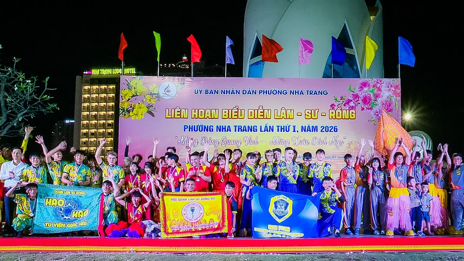 Kết thúc Liên hoan biểu diễn Lân - Sư - Rồng phường Nha Trang lần thứ nhất năm 2026, Ban tổ chức đã trao kỷ niệm chương cho 15 câu lạc bộ, đoàn Lân - Sư - Rồng, chúc các đơn vị cùng người dân và du khách đón tết cổ truyền của dân tộc an khang, hạnh phúc, thành công.