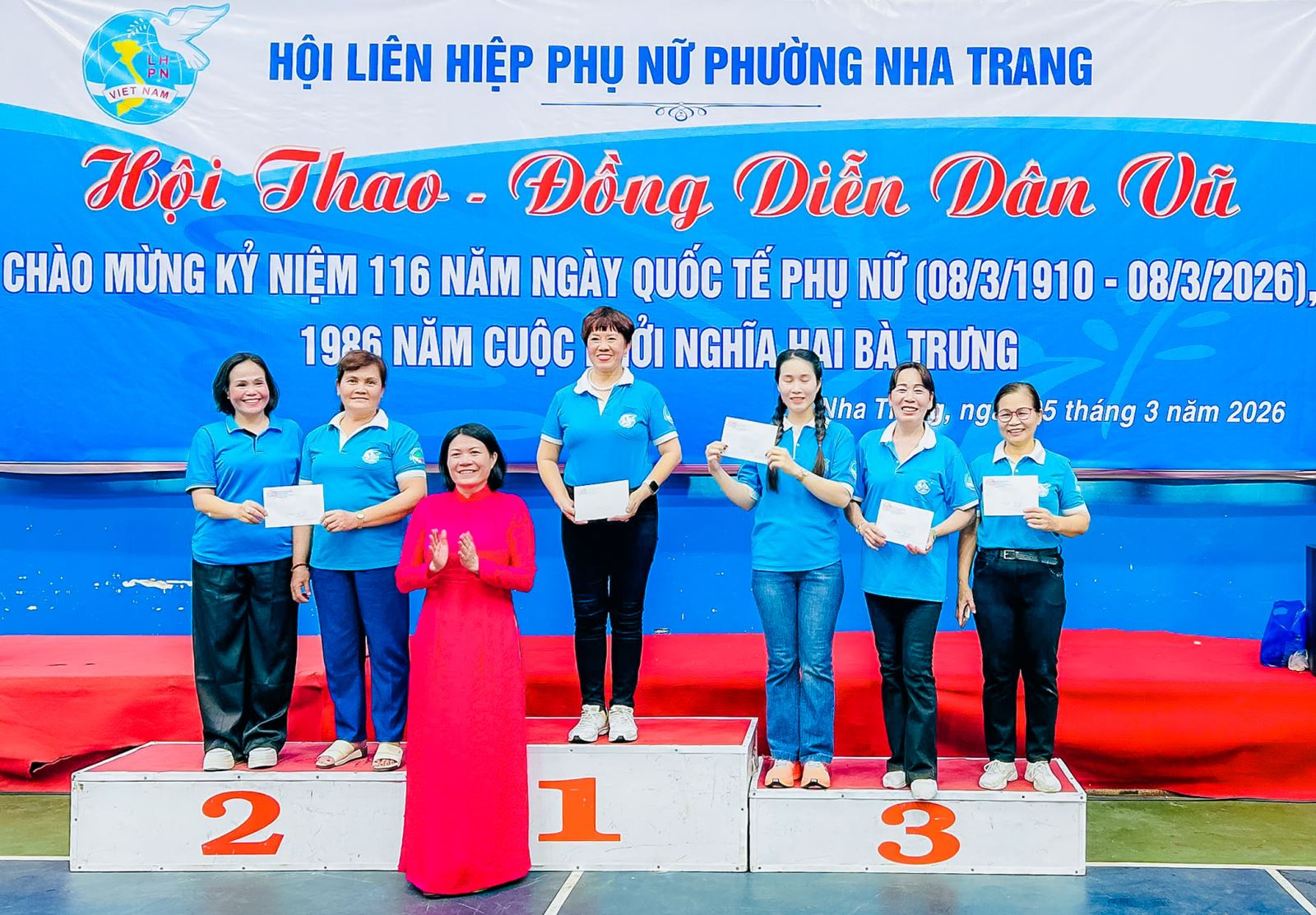 Tại chương trình, 250 cán bộ, hội viên phụ nữ đã cùng nhau ôn lại ý nghĩa lịch sử của Ngày Quốc tế Phụ nữ 8/3 và sôi nổi tham gia đồng diễn 2 bài dân vũ thể thao gồm: Khánh Hòa chào ngày mới và Xinh tươi Việt Nam. Đồng thời các chi hội chia thành 5 đội tham gia thi đấu các môn thể thao như: chuyền chanh, đổ nước vào chai, hai người đi 3 chân. Được biết trước đó, từ ngày 1/3 Hội đã phát động hưởng ứng “Tuần lễ áo dài” năm 2026 và tổ chức thi đấu môn bóng bàn với sự tham gia của 23 vận động viên nội dung đơn nữ và 12 đôi vận động viên ở nội dung đôi nữ. Kết thúc chương trình Hội LHPN phường đã trao 4 giải nhất, 4 giải nhì, 12 giải ba cho các đội, cá nhân đạt giải ở các môn thi đấu. Đồng thời phát động phong trào “Nuôi heo đất tiết kiệm” đến 100% chi hội phụ nữ trên địa bàn.