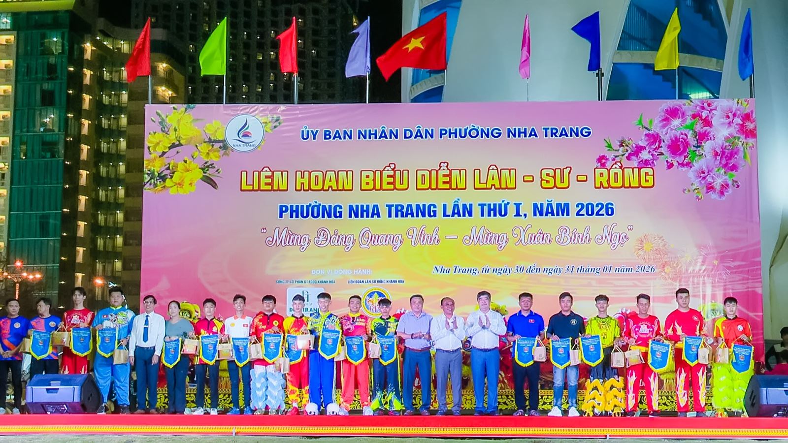 Tối ngày 30/1/2026, tại Quảng trường Hai Tháng Tư, UBND phường Nha Trang tổ chức khai mạc Liên hoan biểu diễn Lân - Sư - Rồng phường Nha Trang lần thứ nhất năm 2026, mừng Đảng, mừng Xuân Bính Ngọ. Tham dự lễ khai mạc có các ông: Tạ Hồng Quang - Tỉnh ủy viên, Bí thư Đảng ủy, Chủ tịch HĐND phường; Huỳnh Quang Tú - Phó Chủ tịch UBND phường; Đại tá Nguyễn Tiến Dũng - Phó Giám đốc Bệnh viện Quân y 87; cùng đông đảo nhân dân và du khách.