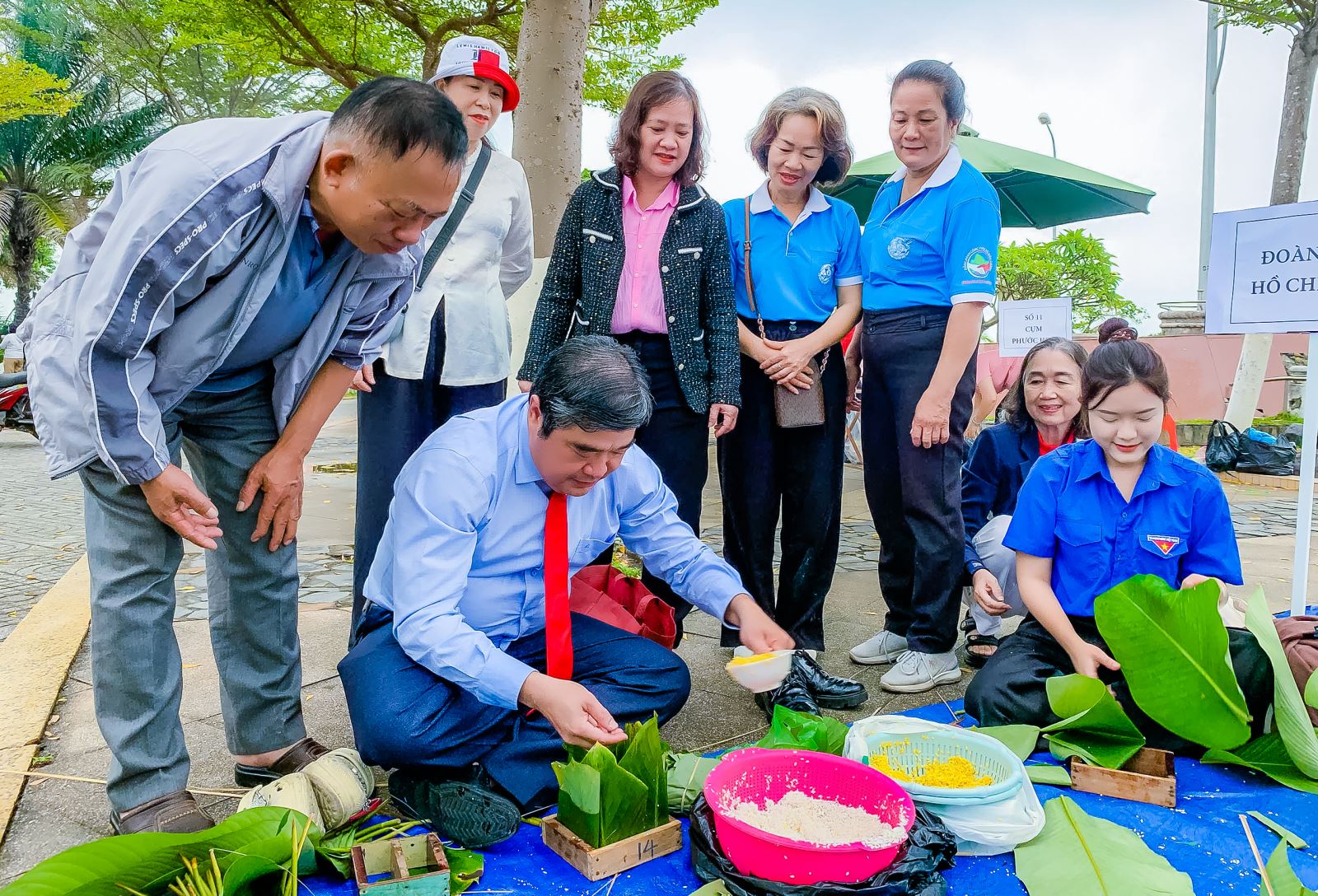 Đồng chí Tạ Hồng Quang – Bí thư Đảng ủy cùng lãnh đạo phường tham gia Ngày hội gói, nấu bánh Chưng, bánh Tét