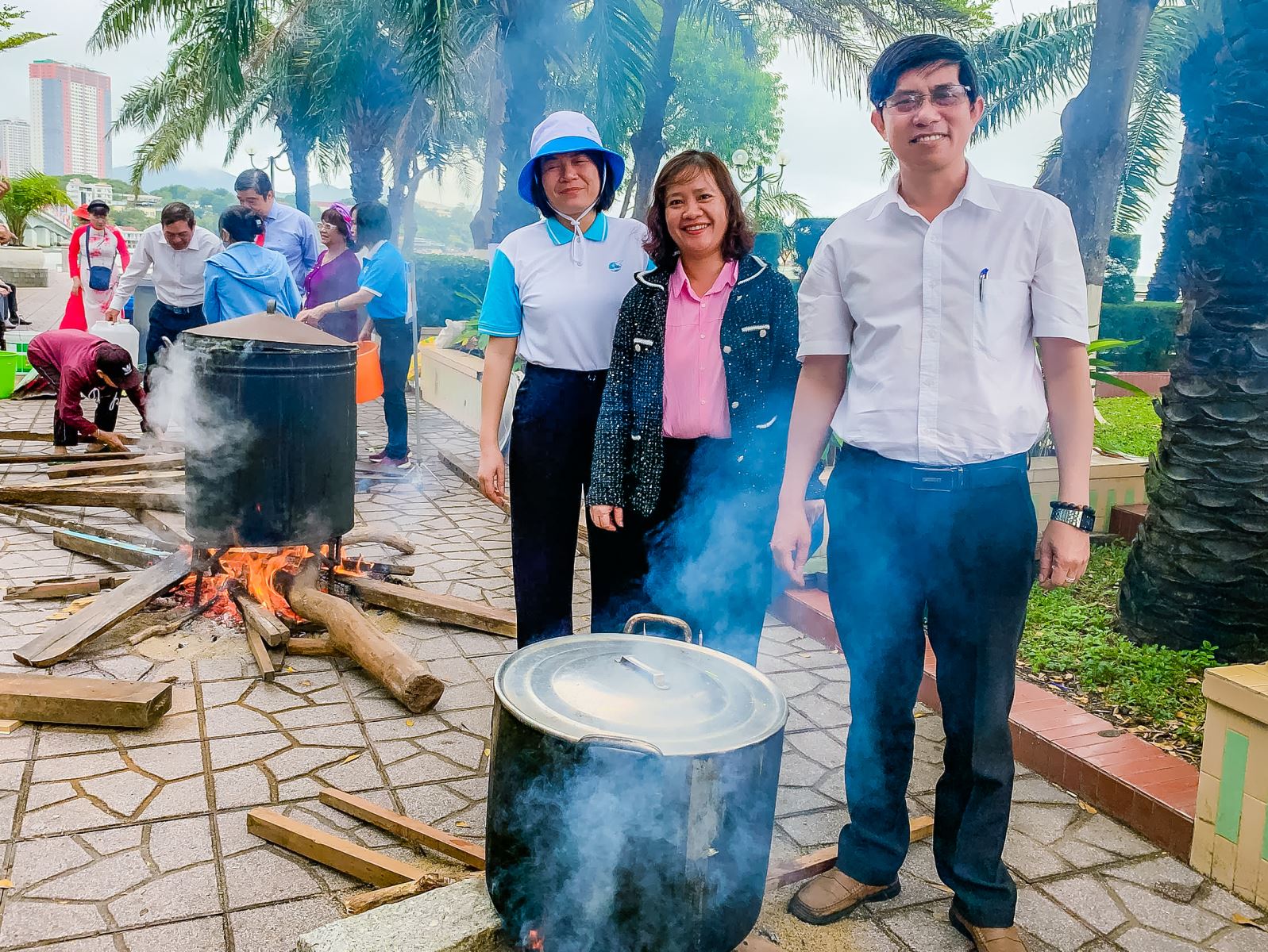 Các đội sôi nổi tham gia gói và nấu bánh Chưng, bánh Tét