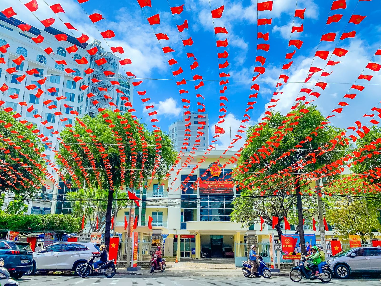 Không chỉ tại phường Nha Trang, không khí hướng tới ngày bầu cử đại biểu Quốc hội khóa XVI và đại biểu HĐND các cấp nhiệm kỳ 2026- 2031 cũng đang lan tỏa rộng khắp trên địa bàn tỉnh Khánh Hòa. Tại nhiều tuyến đường, khu dân cư, trụ sở cơ quan, trường học…, cờ Đảng, cờ Tổ quốc, pa nô, băng rôn, khẩu hiệu tuyên truyền về bầu cử được trang trí trang trọng, tạo diện mạo rực rỡ, phấn khởi.